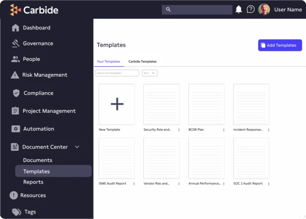Maintain a structured inventory of laptops, smartphones, and other business assets. Carbide helps you document what you own, who’s responsible, and how each asset connects to your security program.