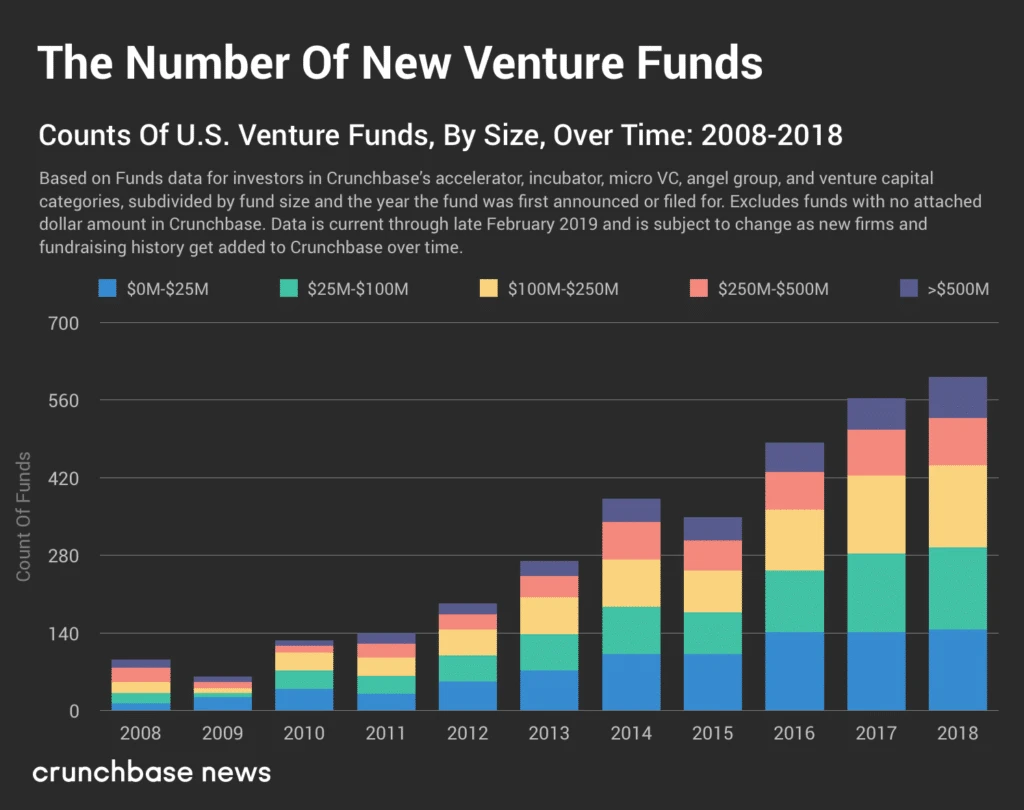 3. The Investors: According to TechCrunch, there are more VC funds than ever, with US VC deal activity in 2018 alone estimated to be $130.9B up from $36.9B in 2008.